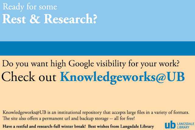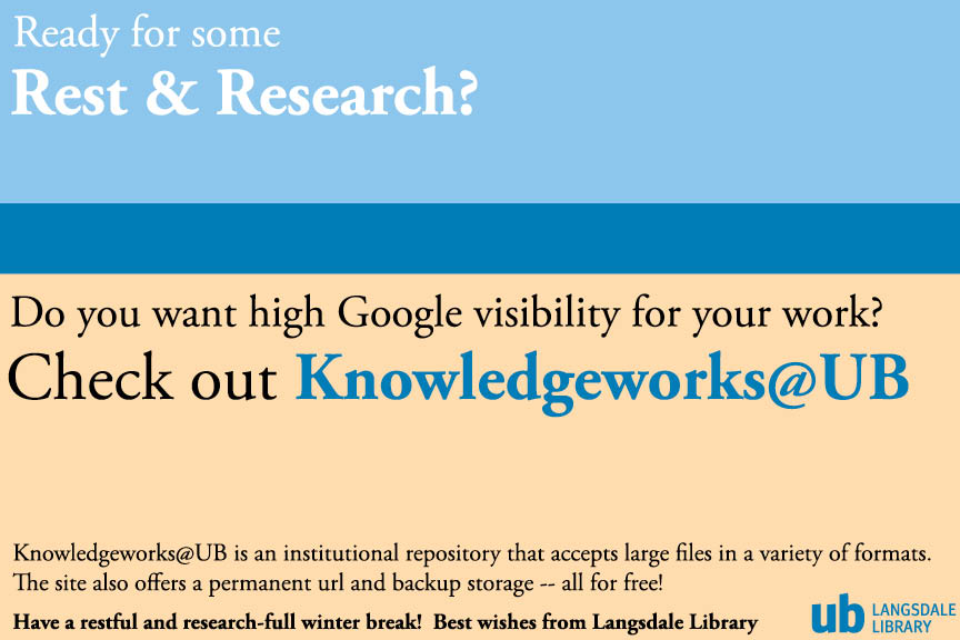 A special message for faculty! Posted on December 20, 2015 by Library Staff — No Comments ↓ For more information on KnowledgeWorks@UB click here: KnowledgeWorks@UB