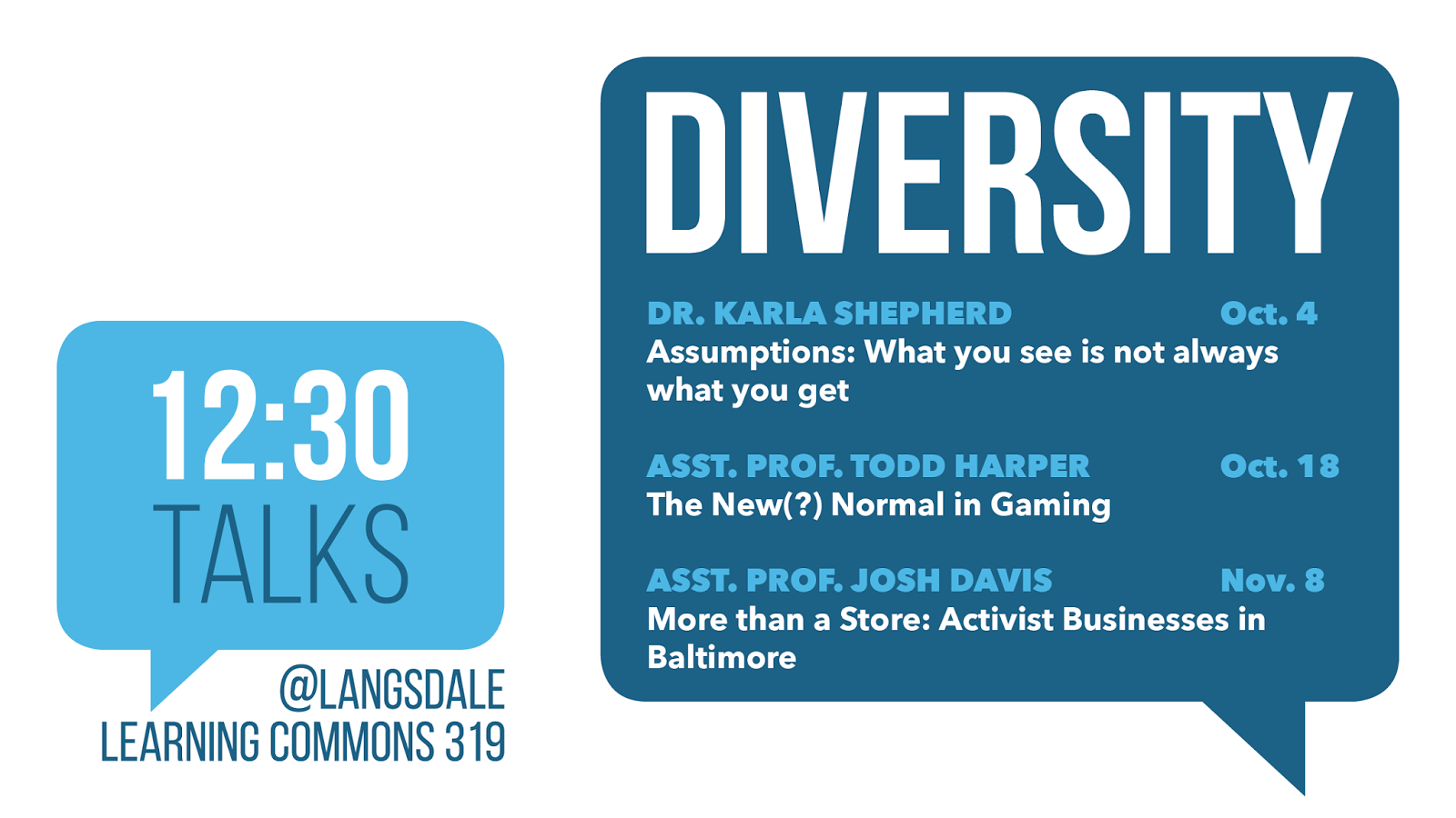 Bring your lunch and join us on 3 Wednesdays this semester during the Common Hour for a series of lunchtime conversations about perspectives on issues surrounding diversity. Connect with professors and staff outside of the classroom setting, or with students from other departments.